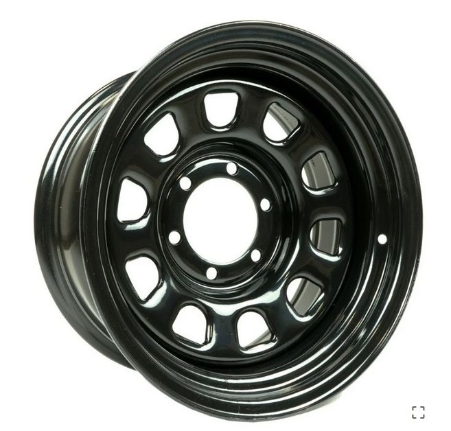 Llanta Off-road Daytona negra desplazada, de metal de calidad reforzado de gran grosor.